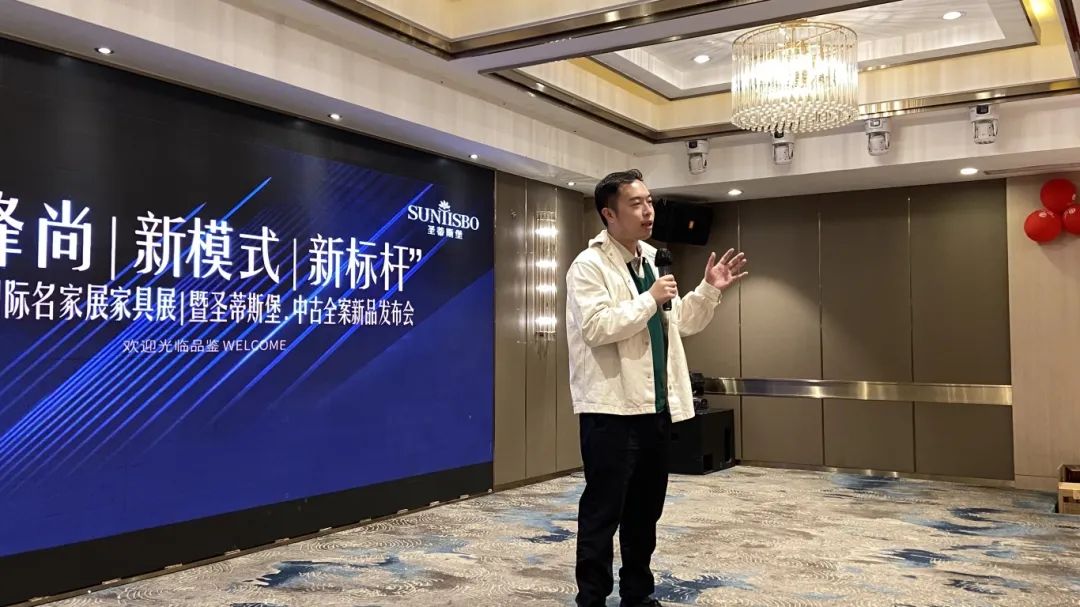 接下来,jiuyou.com官方网站工业营销部副经理吴天喜先生为我们重磅揭晓了2025春季新品中古全案系列和新古典全案升级新品,他从选材、设计、风格、工艺等方面进行了全面的讲解,并提到此次中古新品的全案模式是以更具设计感的创新方式,给予消费者整体性的体验感升级,助力大家在激烈的市场竞争中,突显差异化的优势,实现业绩的飞跃式增长。